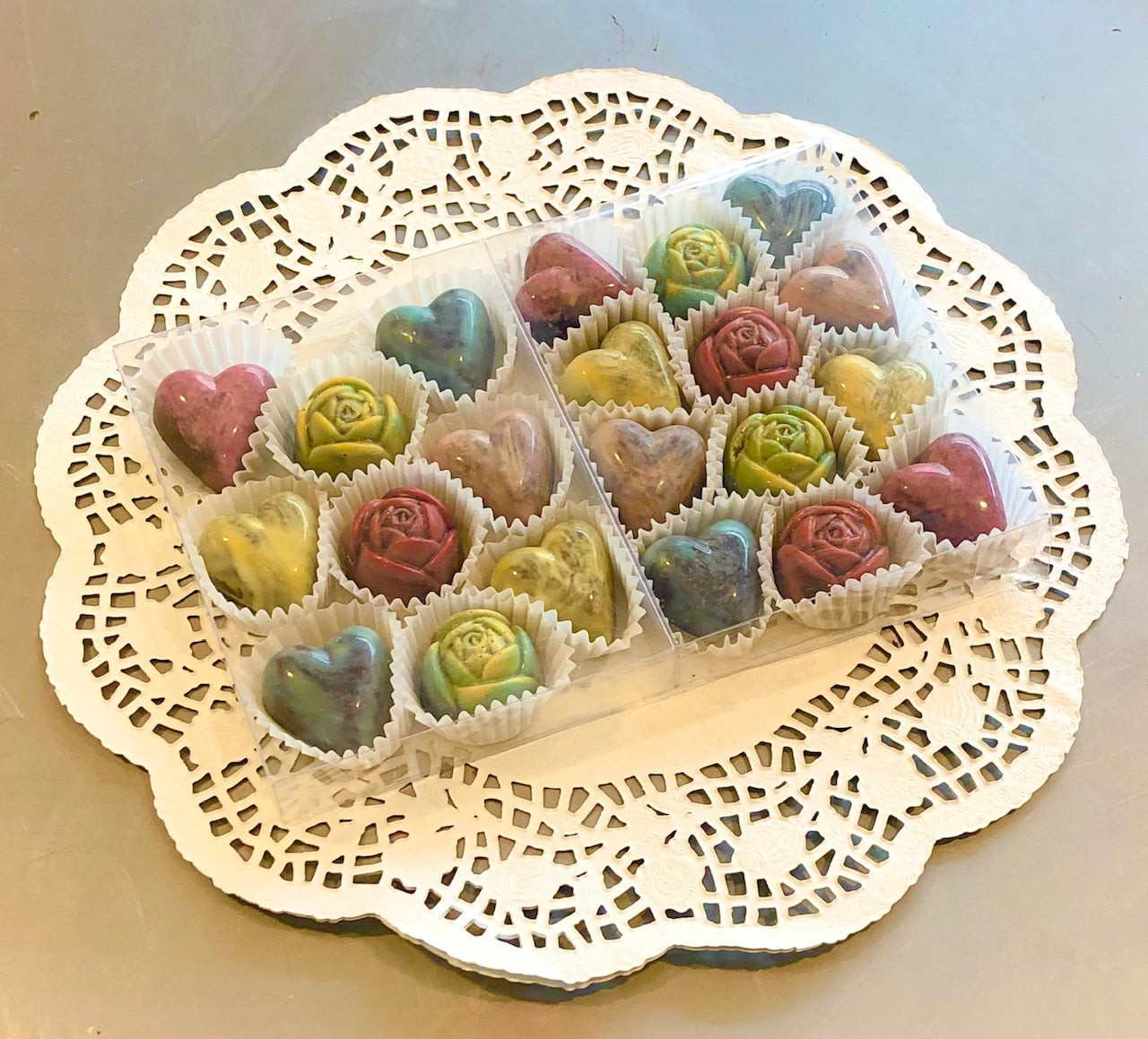 Här kan du beställa våra fina chokladaskar! De kommer med blandade smaker och former. just nu har vi inget system då du kan beställa exakt vilka smaker du vill ha i asken, men det kommer.