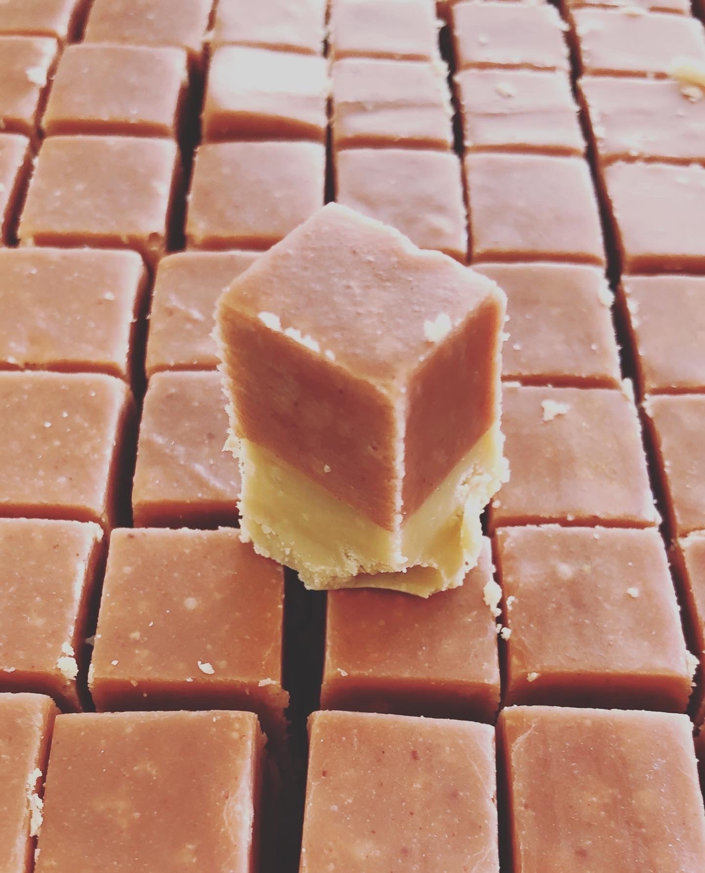 Fudgen kokas i små omgångar om 30-40 förpackningar. Vi använder alltid norrländsk grädde och massor av smör.