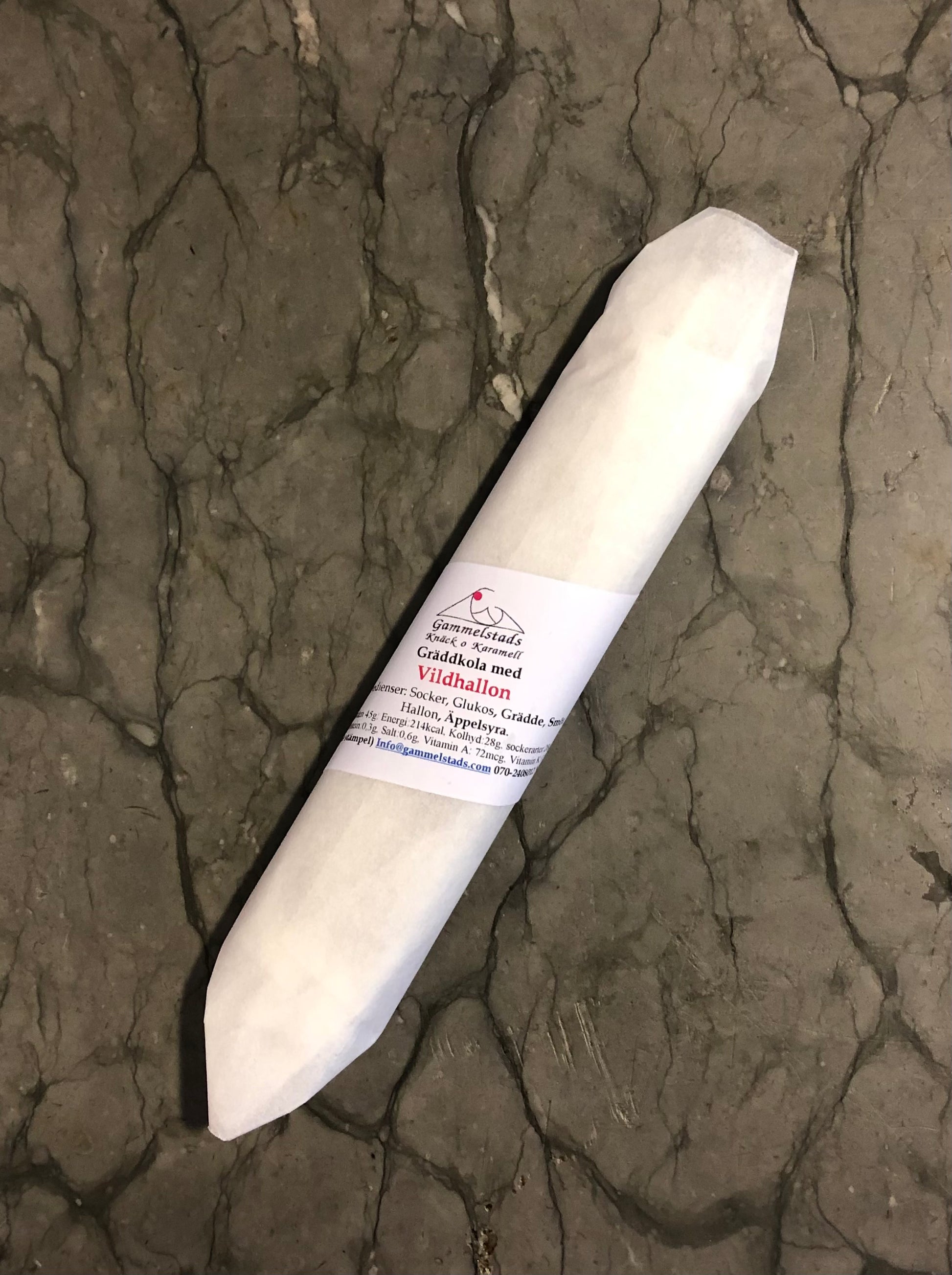 Handgjord gräddkola kokad på norrländsk grädde, bär som vuxit norr om polcirkeln och massor av smör.