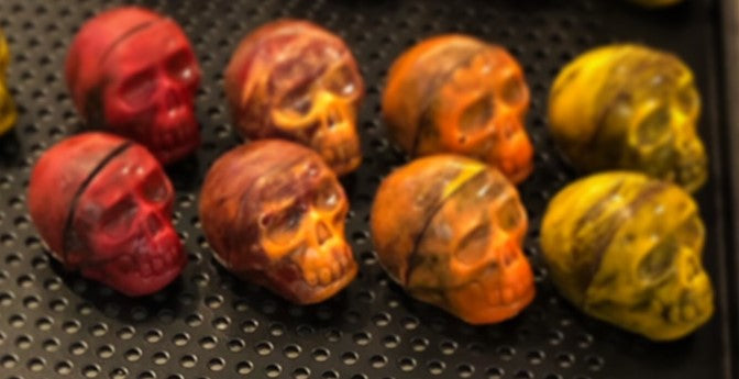 Pralin 1 (gul): 0,08 Carolina Reaper och 0,08 Naga Jolokia