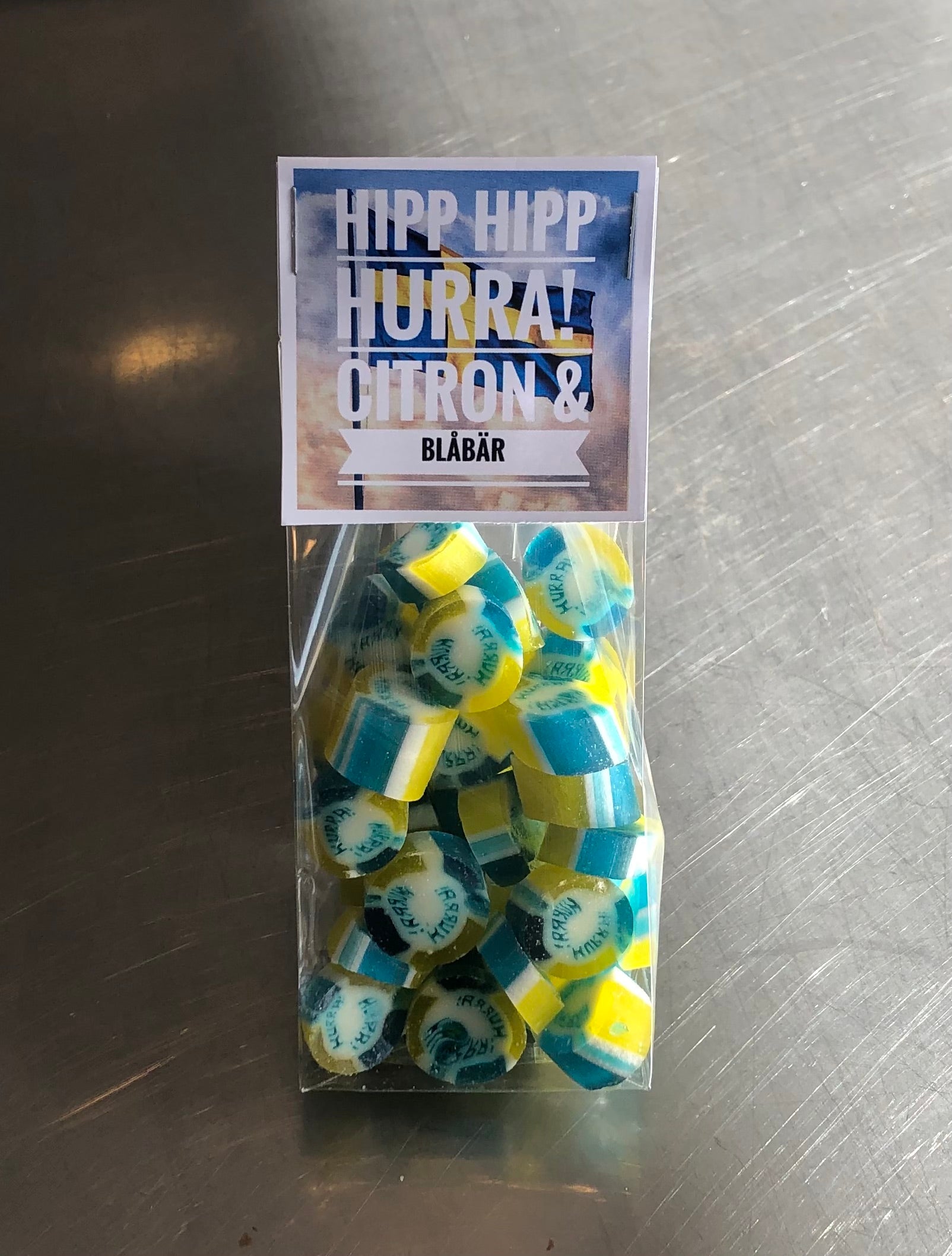 Ingredienser: Socker, Glukos, Majsstärkelse, Blåbär, Citron, Äppelsyra, vinsyra, lecitin, rapsolja, FÄRGÄMNEN: E122, E102, E164